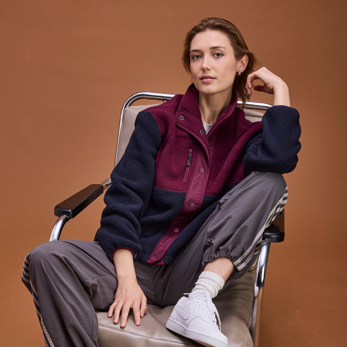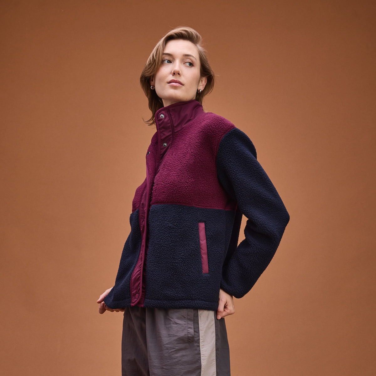 Color-blocked sherpa fleece